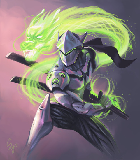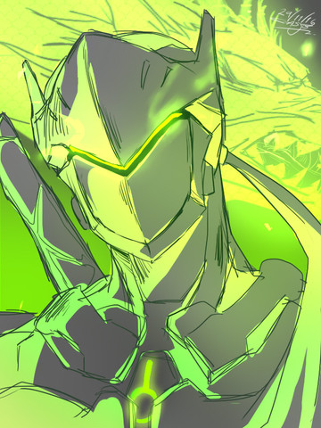 you does'nt often drawn technological or mecha looking things, so seing Genji in your style is quite interesting. and it's well done, too.