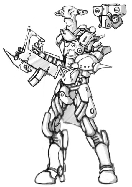 Concept art for the first of our crew backgrounds for Terminus Gate, the Core Worlds. These guys hail from the central hub of human inter-stellar habitation and have access to the most up-to-date technology, weapons, and equipment.The Tech uses specialized equipment to fill a variety of roles both on and off the battlefield. Techs may specialize as medics, mechanics, drone operators, etc...