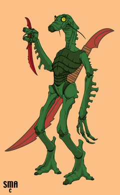 Done in 2007 (and recently unearthed), racial design commission for a Modern/Future d20 RPG setting.There were going to be a whole bunch of additional plant-like races as well as a dozen or so additional PC races, but we never got beyond this first request.