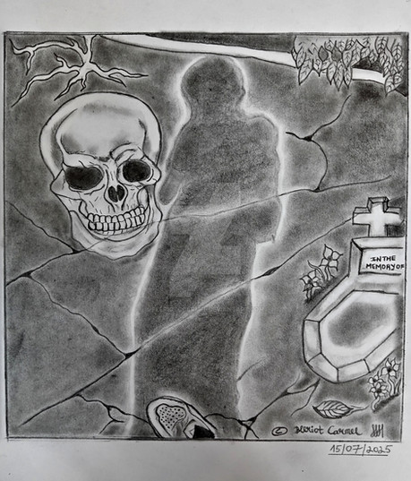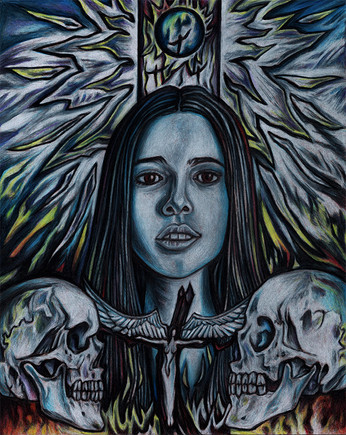 It creates a contrast to the demon skull. Otherwise, I'm not sure why I draw angels so much.