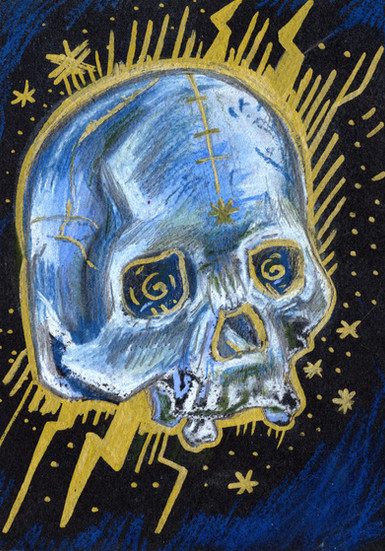 #angel #blue #contrast #demon #drawing #dynamic #fantasy #gothic #hell #intense #skull #surreal #yellow #fire #candlelight #coloredpencil #illuminated #prismacolor #psychedelic