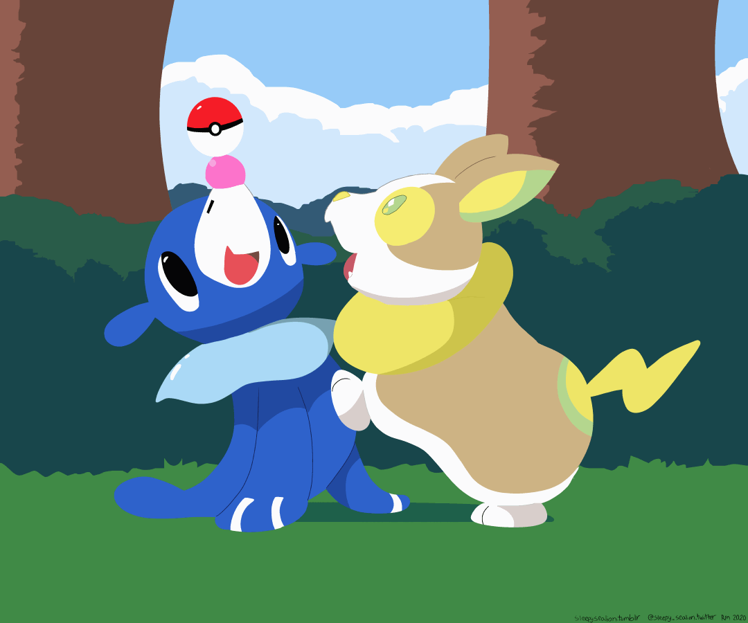 This is a remake of a drawing I made a long time ago. This also serves as part of the backstory for two of my OCs, Terry Whitlocke, the Raboot, and Ashiku Uematsu, the Brionne.Pokémon owned by Nintendo and Game Freak