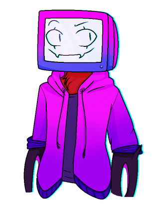 Foxy the pirate,wearing a tv, with the face of flowy from undertale , and a really cool pink/purple shirt.....