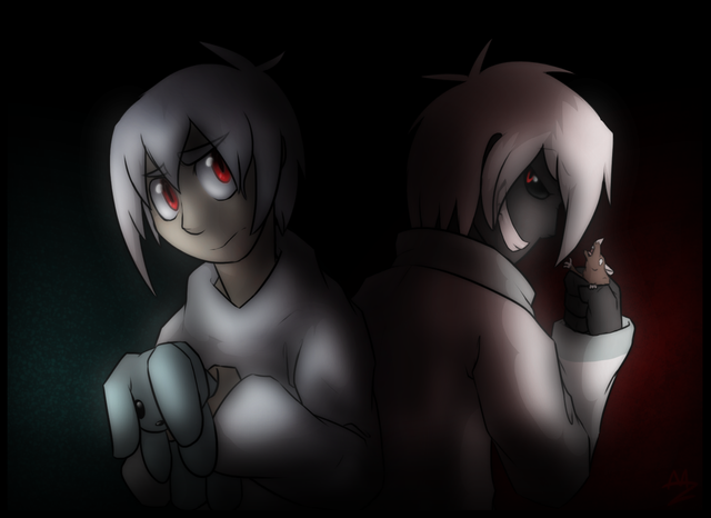 Felt like trying to do some more with this Paper cut out-esque style of drawing. This one was tested on poor Dem and Jay so ya know. Blegh.Jay and Dem belong to