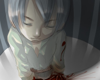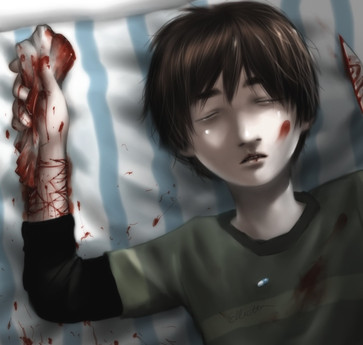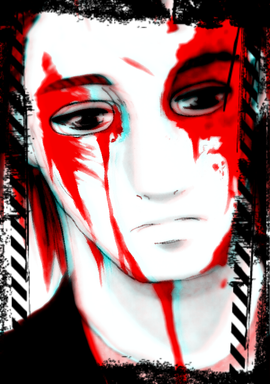 creepy how his eyes are bleeding- but drawings that depict blood and are done well are awsome!