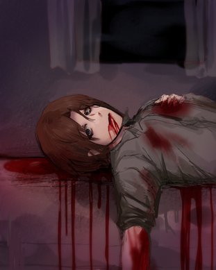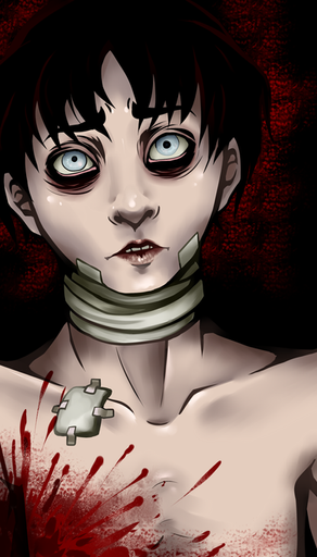 The realistic details on the eye are great. (especially the red-eyed look) Wonderful composition and coloring too. Man, I just love how you color people's hair...