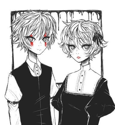 i love the pale colors that you used, and the eyes really stand out. the dress on the right is very...interesting lol. very nice job