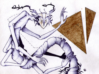 Ha, ha--thank you! ^__^ He's a nightmare--an agent of the Boogeyman--and he presides over dreams where you're suffocating or drowning. He's part of a story dealing with the world of dreams! I haven't really done anything with it besides draw the characters.