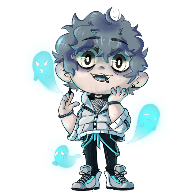 cleaned up a sketch of the new halloween boy 💕 its terrible how much i love him and his little ghost friends but here we are!