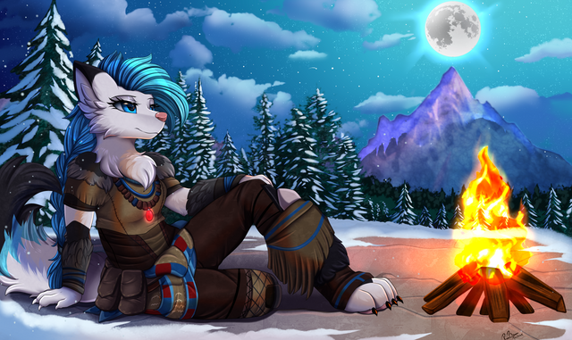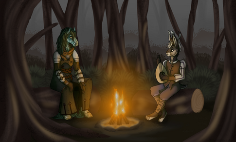#camp #commissions #female #fox #mammal #canine #forest #furryanthro #hoofed #furrycommission #campfire_night