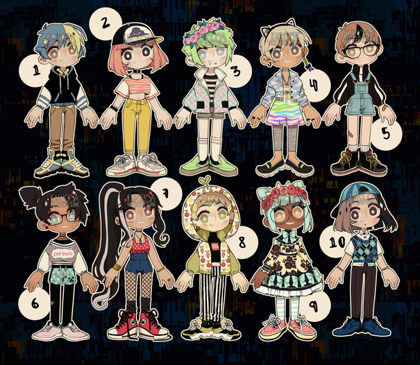 #adoptablesopen #digitalart #characterdesign #adoptable #characterconcept #adoptableauction #sale #adopt #animeboy #animestyle #bid #clown #cutekawaii #doll #fantasycharacter #fantasycreature #femalecharacter #girl #male #malecharacter #originalcharacter #elffantasy #auctionbid #cheapadoptables #adoptablebatch #auctionadoptable #batchadoptables #setpriceadoptables #auction_adoptable
