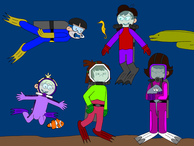 A request byThe City of Royal Woods has recently passed a law that requires all individuals under the age of 18 to take scuba diving lessons with a trained diving instructor before they can be approved for diving out in the wild. (For anyone 18 or older, it's purely optional) And for our young teenage couple Lincoln and Ronnie Ann, they are not too pleased to have to do what is basically summer school just so that they can go scuba diving in any body of water they wish. I think we'll have to give Theresa Davis a stern talking to about potentially removing this stupid law.