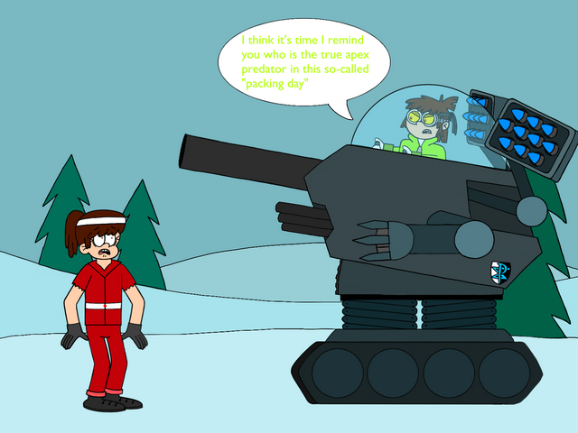 THE ICE AGE!!!Normally when school is cancelled as a result of a snow day, children are happy for not having to go to school. But when it comes to the Age Swap AU Loud family, snow days are among the absolute worst things that could possibly happen. Unable to go to work at Royal Woods Community College because of all classes being cancelled, Lisa is forced to entertain herself by having fun in the snow. Except her idea of fun in the snow involves pelting her family with snowballs and various snow-related gizmos, just because she is so invested into the idea of snowball fights. And she can go overboard to the point where some of her inventions are capable of freezing others solid! And she's also given herself some drugs to give herself seemingly limitless stamina for this occasion, so good luck trying to wait until she tires out. Needless to say, this Merciless Lisa does not pull any punches.