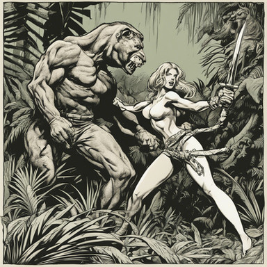 #ape #lion #mei #movie #1960s #adventure #africa #animals #bikini #chen #comic #film #filmposter #frazetta #graphic #illustration #junglegirl #movieposter #oldschool #panther #retro #scantilyclad #wilderness #feralcharacter