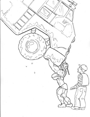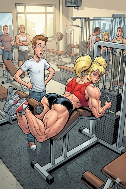 I do like her HUGE, sexy BIGNESS! Β Cute face and very impressive legs. Β And, her strength is equally impressive. Β Love your choice of the attire you have her wearing.