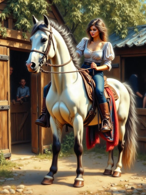 My Stardew Valley adventure continues - I've bought a horse to make travelling around much easier!Created using Bing Image Creator