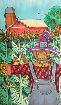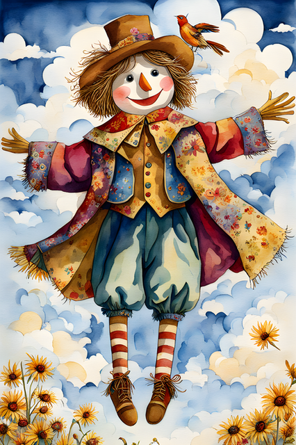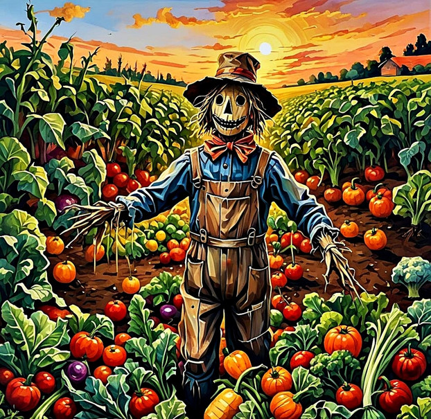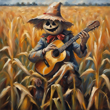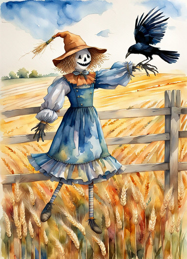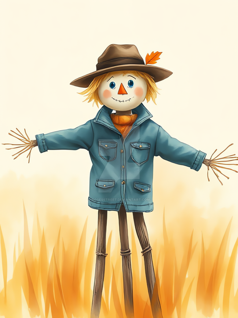 In the Autumn sun stands the silent and vigilant protector of the cornfields.Created using Bing Image Creator