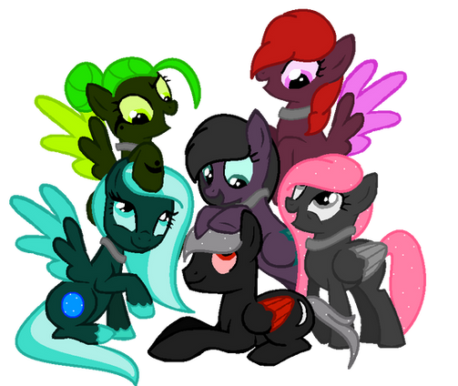 You actually have NO IDEA how much editing I had to do here. As you can see, I had to rearrange some of the characters so it could fit with their personalities but also in the order of the cutiemark itself. Muse and Cuse are unmoved. Tuse and Vuse are up the top and flipped horizontally. Duse and Ruse are at the bottom and flipped horizontally.Edited in Paint and Photoshop.