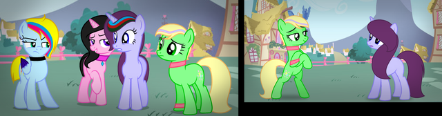 Peacock spotted a pony from the movie that had some similarities to my OC. Green coat, brown mane, brown eyes, unicorn. But MuseScript is not MuseScript without the green highlights lol!Related content