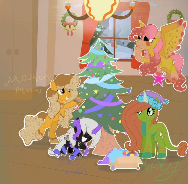 Don't you think my OC looks like a Christmas tree?Also, more drawings of the Peacock sisters and myself as fillies.