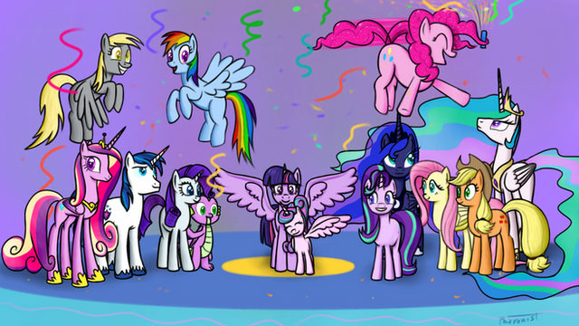 MLP FIM has finally reached its conclusion. And I loved it! I love these designs of the older mane 6 about 20 - 25 years later. I just thought I would have them do the same pose they had in the 1st opening picture. All of the feels! I'll be doing a special cover soon so keep your eyes peeled.Prequel image:ย www.deviantart.com/musescript/โฆ