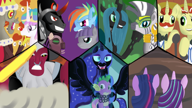 #princesscelestia #twilightsparkle #applejack #fluttershy #rainbowdash #rarity #pinkiepie #princessluna #liaco #spikethedragon #queenchrysalis #kingsombra #tankthetortoise #discorddraconequus #lordtirek #bluestreakmlp #nisteemlp #luminamlp #kingsophirosmlp #thedemonsdaughtermlp #brucusmlp #acrusmlp