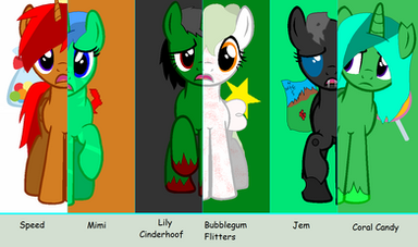 Muse (MuseScript's energetic and fun right brain), Script (MuseScript's strict and hardworking left brain), Crutchet (MuseScript's evil persona) and MuseScript (Me silly)