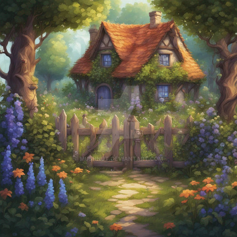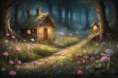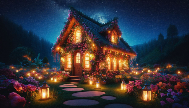 #digitalart #magic #ai #dreamup #fantasyart #forest #architecture #plants #cartoon #cabin #covered #flowers #glowing #ivy #milkyway #nighttime #path #stars #surrounded #trailing #trees #willow #wisteria #wrapped #ai_art