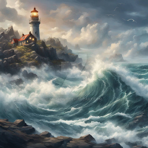 #digitalart #fantasyart #digitalpainting #cartoon #drama #sky #sea #portrait #beauty #cliff #huge #landscape #light #lighthouse #night #scene #scenery #setting #splashing #waterscape #waves