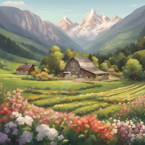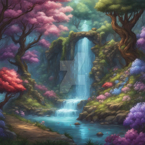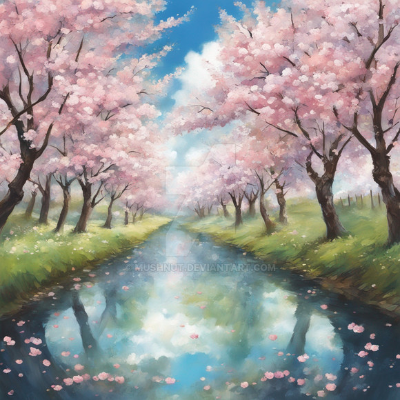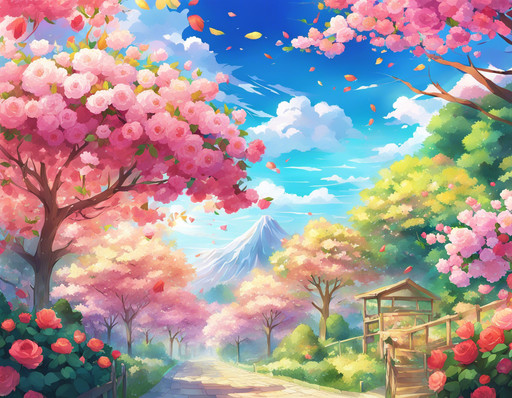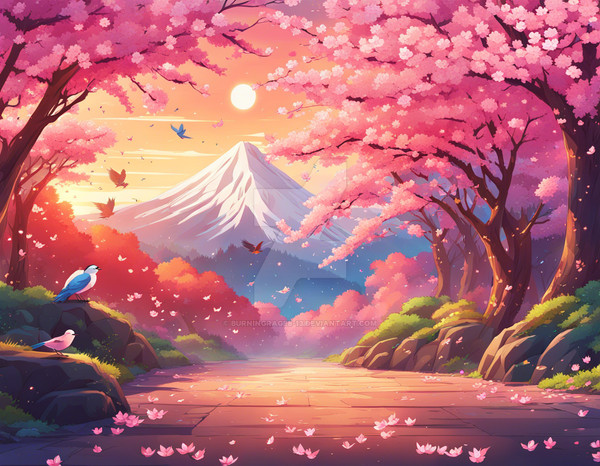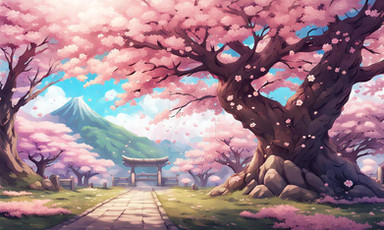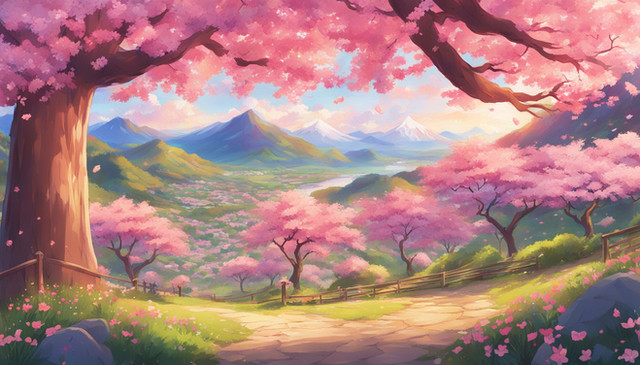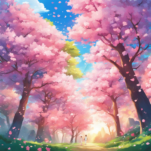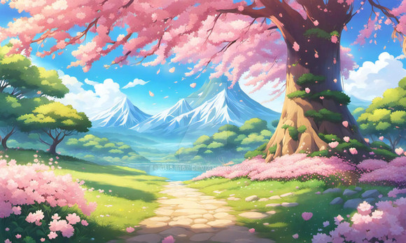#digitalart #wallpaper #ai #anime #cartoon #conceptart #forest #sky #blue #cherry #clouds #landscape #meadow #mountain #tree #trees