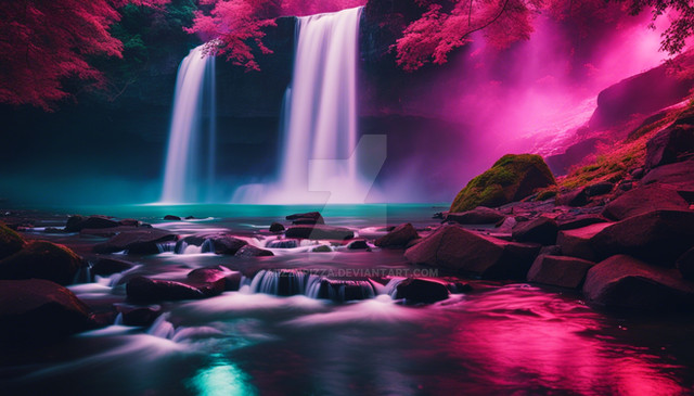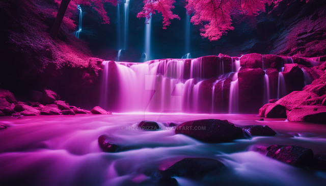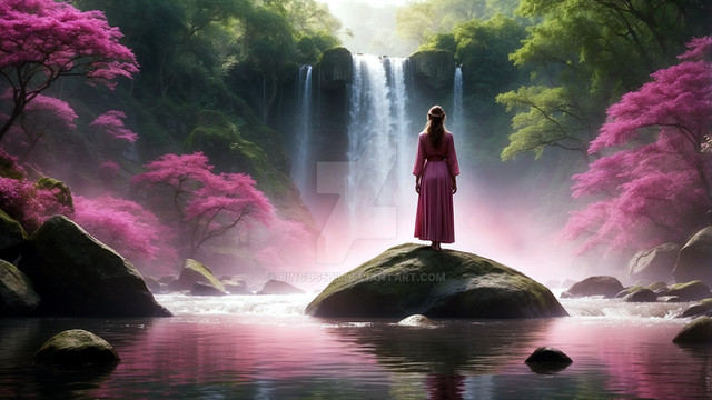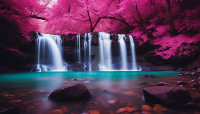 #digitalart #photography #wallpaper #waterfall #drama #surreal #forest #deviantart #beauty #ai #blue #cherrytree #falling #flowers #pink #pond #purple #raining #red #sakura #white #willow #dreamup