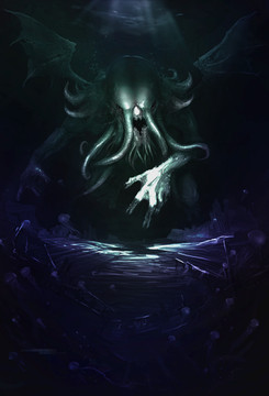 Brilliant painting and BEST incarnation of Cthulhu I have ever seen! (he looks positively alien AND has a form that is convincingly massive in itself!)