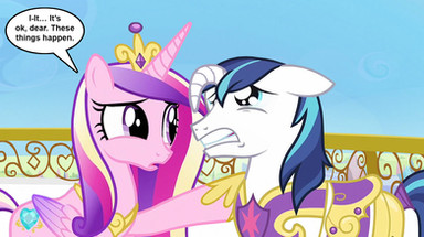 Shining and Cadence were utterly destroyed. Both felt hatred for themselves, and blamed themselves constantly. Unfortunately, they still had duties to attend to, and the loss of their loved one just caused them to put more work there... than with each other. The few interactions that they had were just small talk, and soon, turned to anger and defensive, and soon any interaction they had were either smiles for the cameras, or furious fights over tiny things.