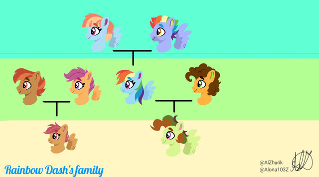 #firstbase #mlp #scootaloo #mlpfamilytree #tendertaps #windywhistles #bowhothoof #familytree #rainbowdash #flashsentry