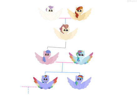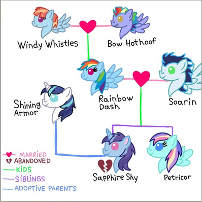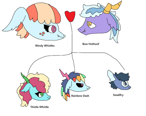 Bow Hothoof and Windy Whistles, high school sweethearts, happily married. Unfortuantely, it took quite a while for them to conceive.... Until Their beloved Rainbow. And much to their surprise, months later, their son Zipperflash (Who mainly sticks with Flash) was born!