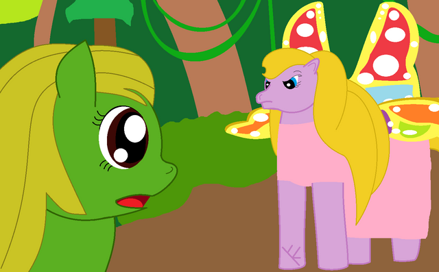 “Aloe, sweetie, be careful. There are roots you might trip over.” Fluttershy gestured to said roots with the wing that wasn’t carrying the basket of goodies the two had prepared. Aloe only nodded- only to trip right over a root.
