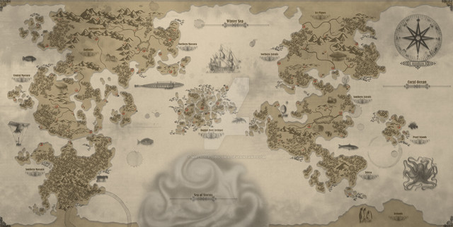 A final revision of the realm map I did after looking about for inspiration.* * * * * * * * * * * * *