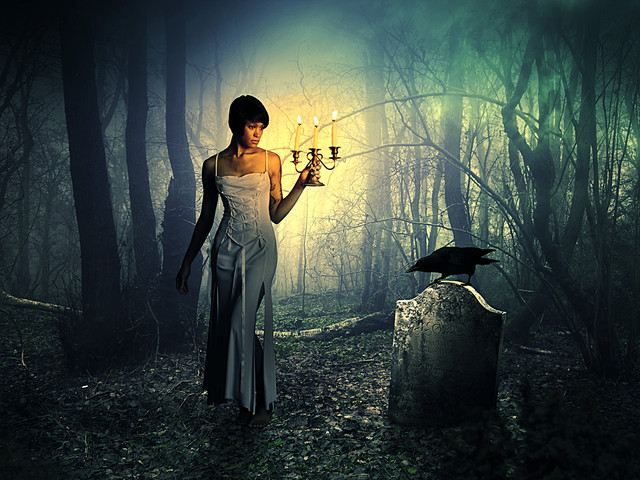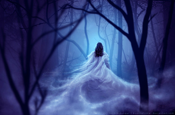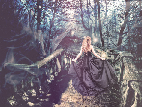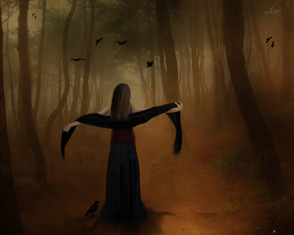 The focal point is very orderly and directional; it really gives the impression that she's fading down a one-way path. This can be symbolic in many ways...