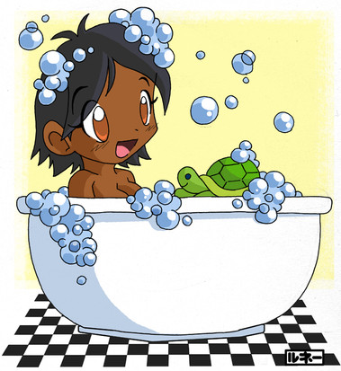 My friends have these stickers for Telegram...so, I wanted to draw my own ones.^^"Here is the ninth one: Bathing Mutabi