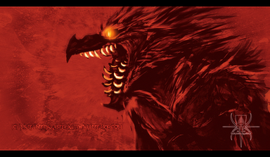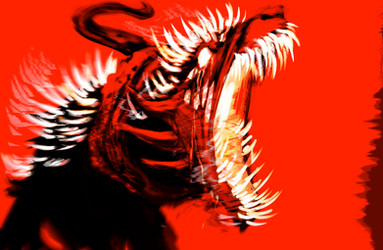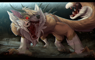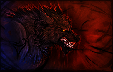 Tho he's not a real 'dog, wolf' whatever, and he normally can't open his mouth, the jaw n teefs just fit for this : p