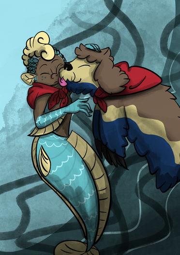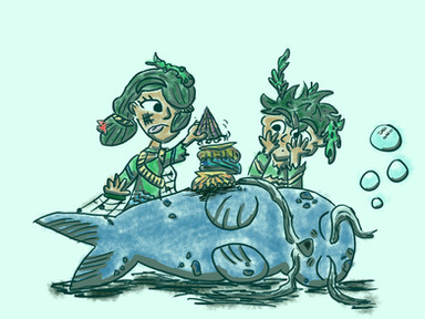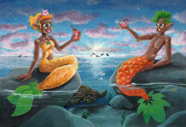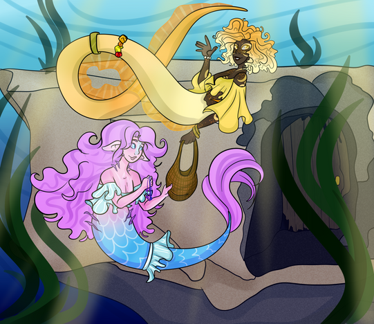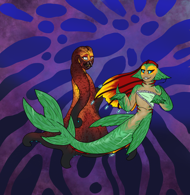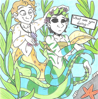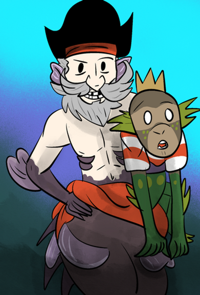 Our tails are based off of the fish. Pierrot Fish and Bitty Baitfish And the two fish who are with us are. Corn Cod and Popperfish