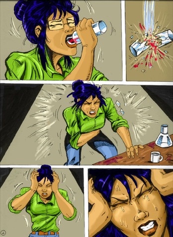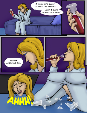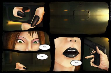 she does in part 2. i have about id say 40% of it done (im going back to re-ink some older pages and a few more need a layout overhaul cuz i dont like how they look.) comics can take some time to do, especially if my schedule (definetly during the holidays) is packed with alot of projects. im also collaborating with other artists on other works that use that concept (ive been posting some of the concept art here).