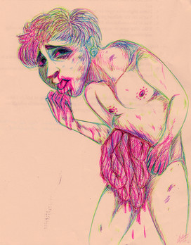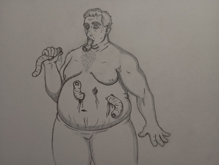 Based of a photo in *t-gar 's stock archive...but the photo has been deleted it would seem.So, his hand was just there..and it needed to hold something..and thats my reasoning for this guy with his guts tumbling out!