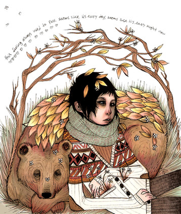 I love the colours and the details in this piece. You have a lovely simple drawing style that is mixed with intricate colouring and compelling designs. :>