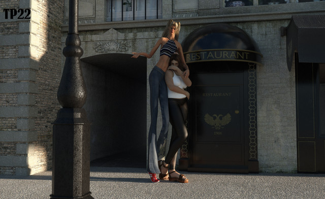 The younger needs extra wedge heels ^^