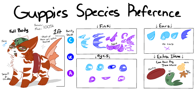 Finally got around to updating Guppy's Reference sheet with his new design. Hard to believe how much his design has changed since last year, but I'm so happy with it and enjoy drawing him much more than I used too.Character name: Guppy