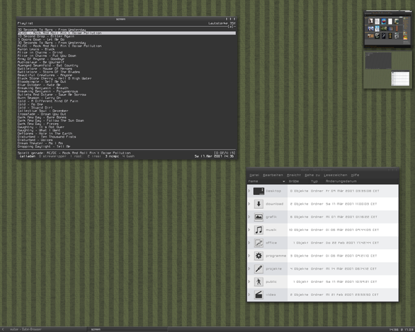 Da ich eine Grundconfig hab, die ich immer verwende, fΓ€llt das anpassen von fvwm nicht mehr so schwer. Allerdings hat es auch lang gedauert, bis das GerΓΌst fΓΌr meine configs stand...