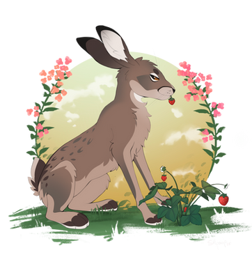 BUNNNNYYYYYYYY!! And strawberries! My spirit animal and my spirit fruit (I guess if I had to have a Spirit Fruit it'd be a strawberry!) all in one awesome image. Beautiful!