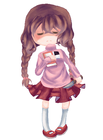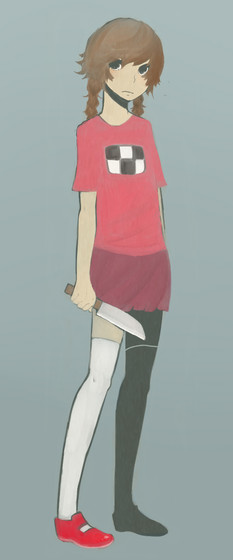 The fact that it's hand colored on a digital background almost gives it the effect that Mado's 2D in a 3-Dimensional plane, as if she were made of paper.