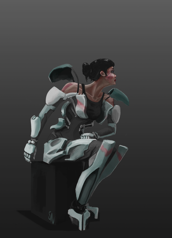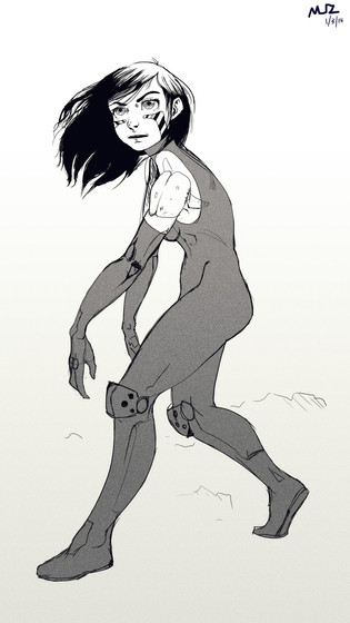 Hell yes dude, bring it! Love the steel and orange, it works so well in many applications, and I especially like the how you've partitioned them on her figure. Greebles aren't suffocating, quite subtle, which shows restraint. Obviously quite Battle Angel inspired, but different enough (the colours go a long way in that regard). And probably your best Muz-face yet!